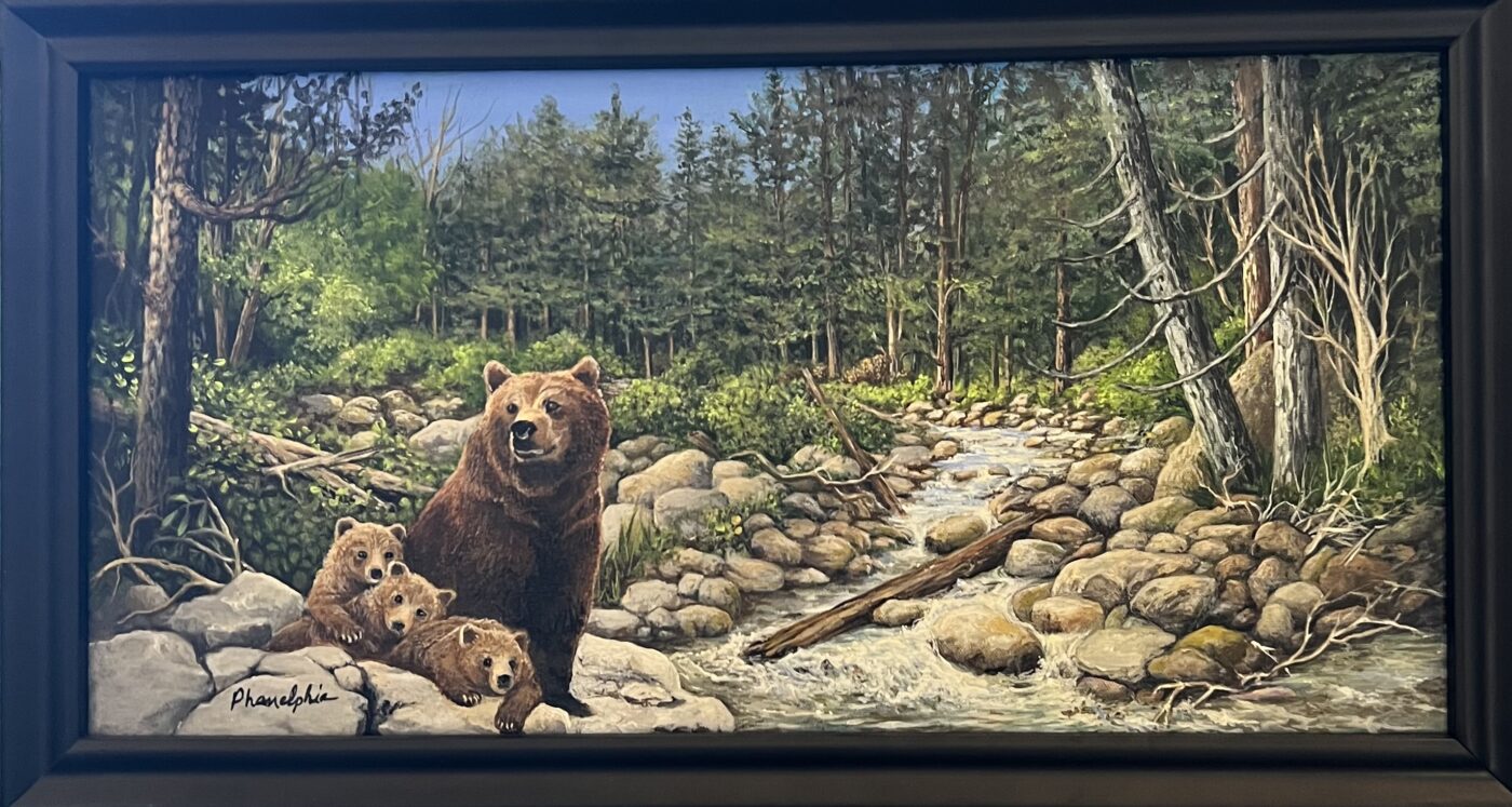 Dorothy’s at The Lake’s Rim of the World Online Art Gallery consists of artists who live in one of the Rim of the World Communities in California. Phanelphia resides in the Rim Community. She creates with pencil, acrylic paints, stain glass and other mediums. She says, “I enjoy going places in my artwork, treasuring the experience of being with nature’s creatures or in a memorable place whether real or imagined” and she appreciates when others connect with her artwork in the same way.